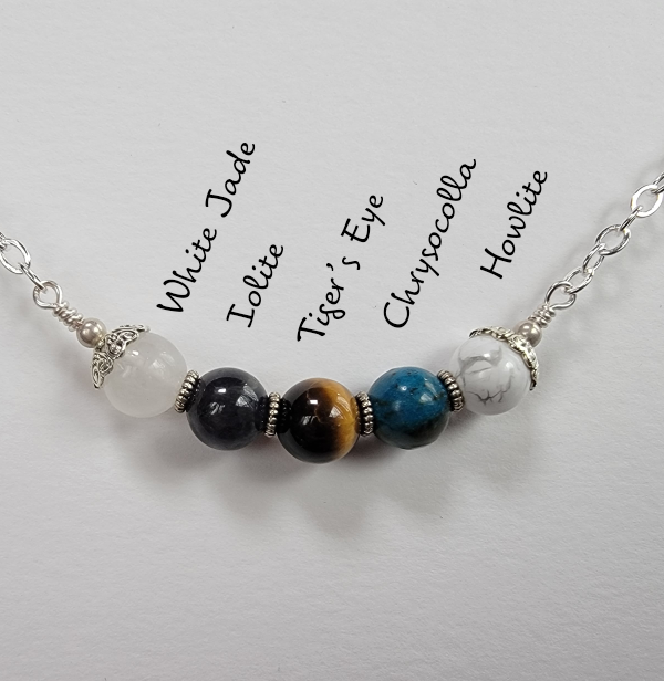 Wear a bit of extra magic. This necklace features five beads, and the first letter of each stone name spells out the word WITCH: