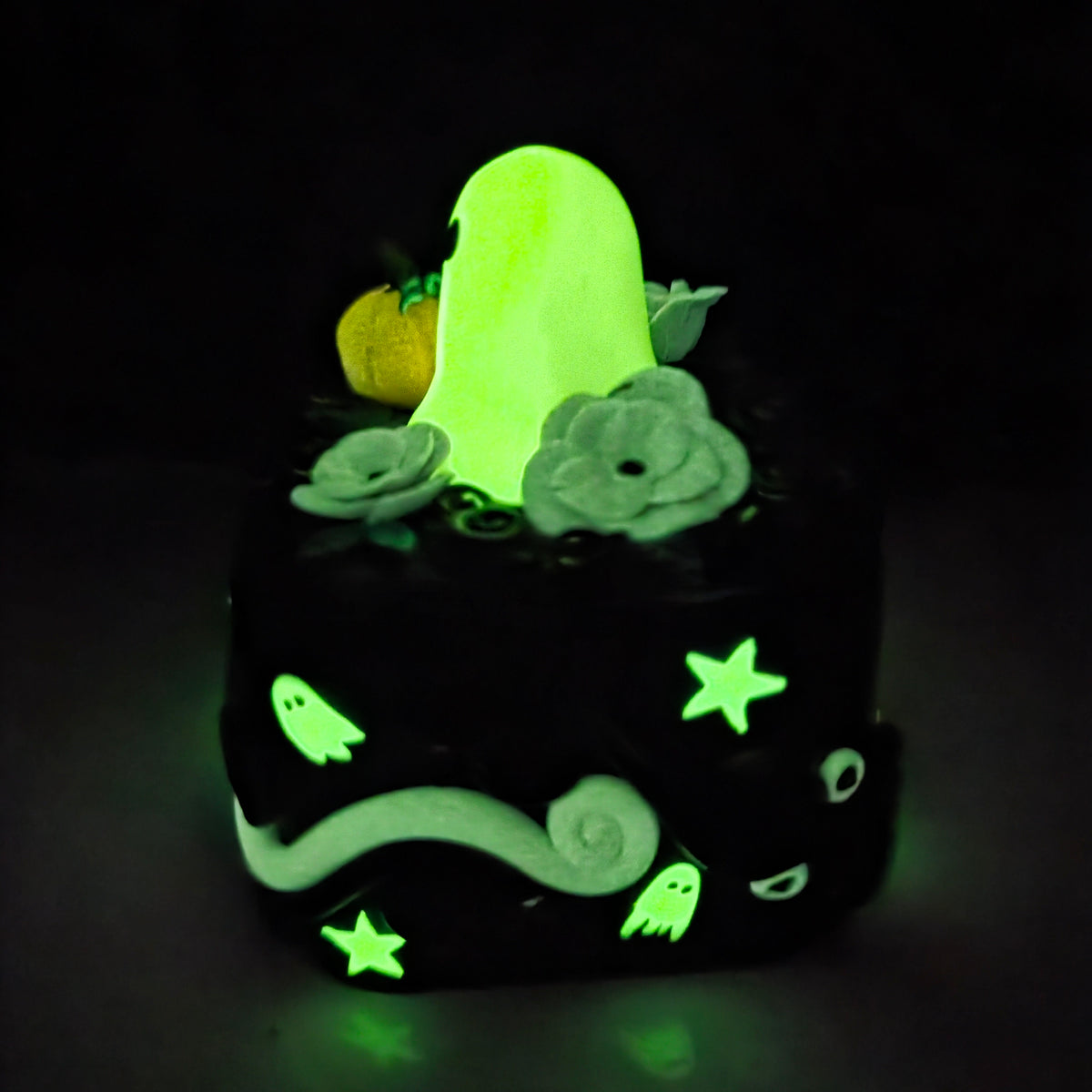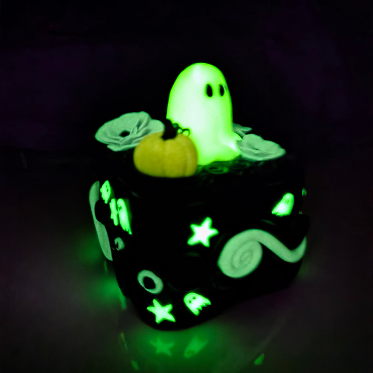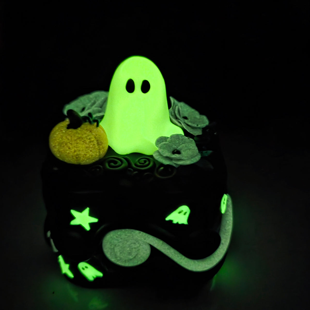The base of the box is decorated with swirls, stars, and tiny ghosts.