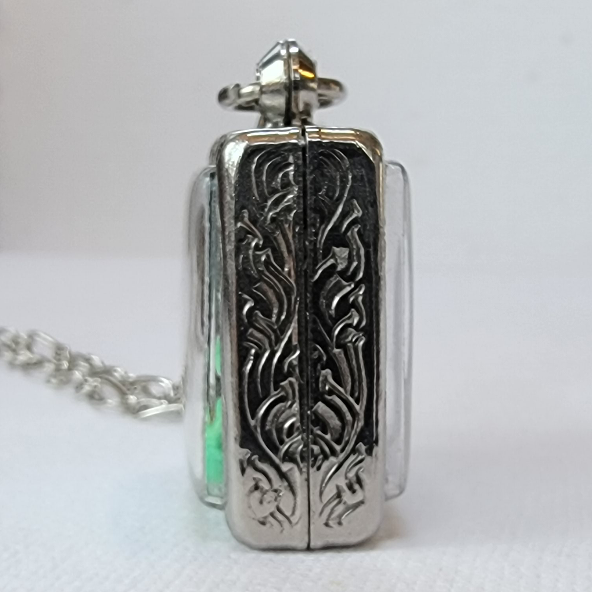 About 27mm tall (not including bale) and 22mm wide. See last photo with a penny for size reference! Comes on a matching 24 inch chain with a 3 inch extender.
