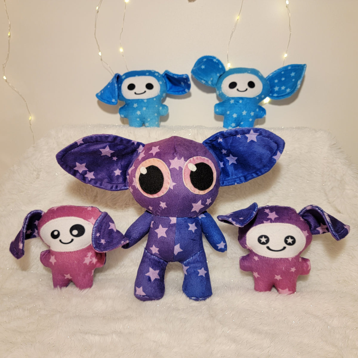 The same cuteness and mischievousness of the original gremlins, packed into a smaller package. All gremlets are made with minky fabric with fleece faces. Gremlets are about 5-6 inches tall, with earspans of 8-10 inches. Care: surface clean or machine wash cold, tumble dry low.