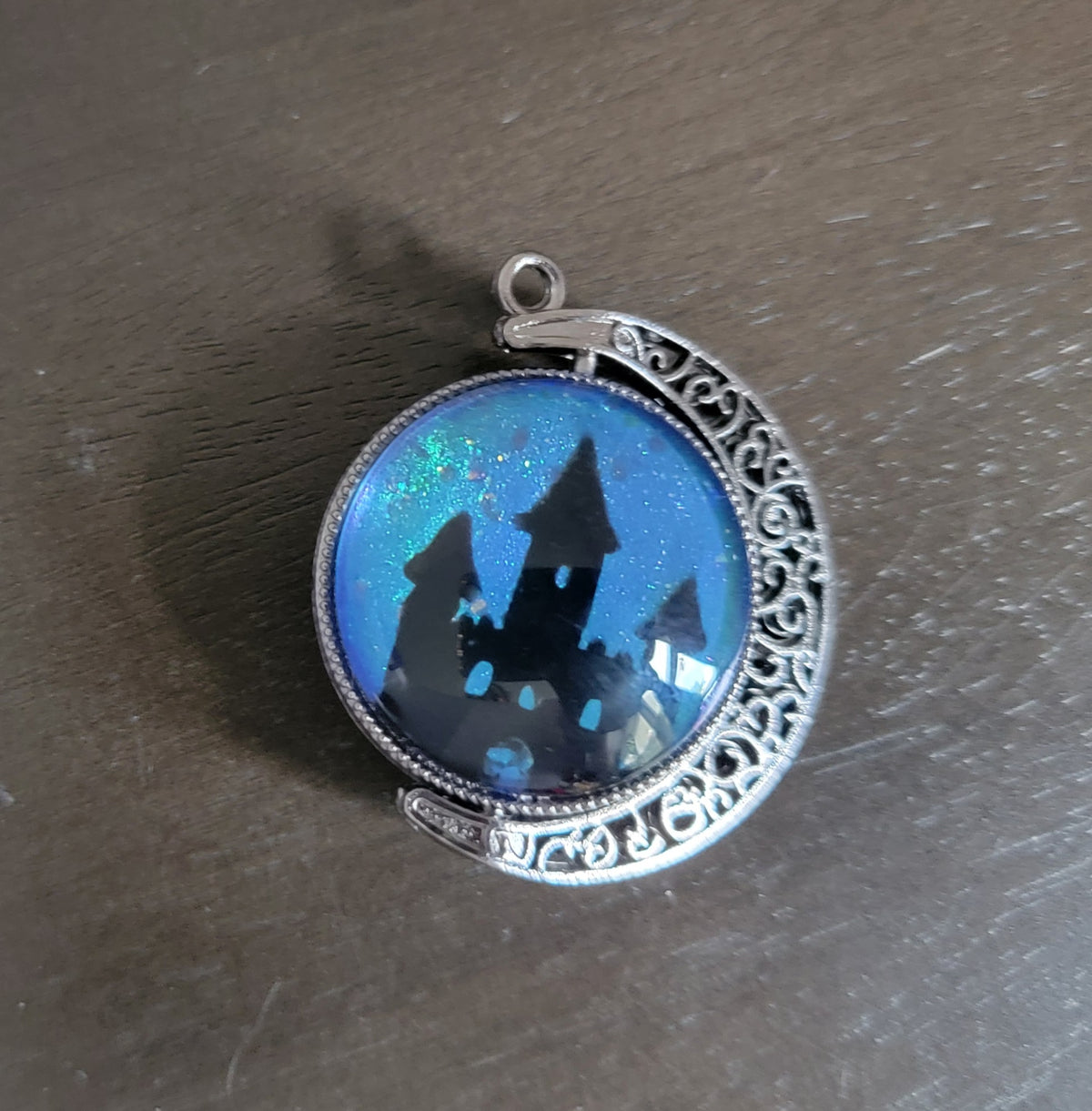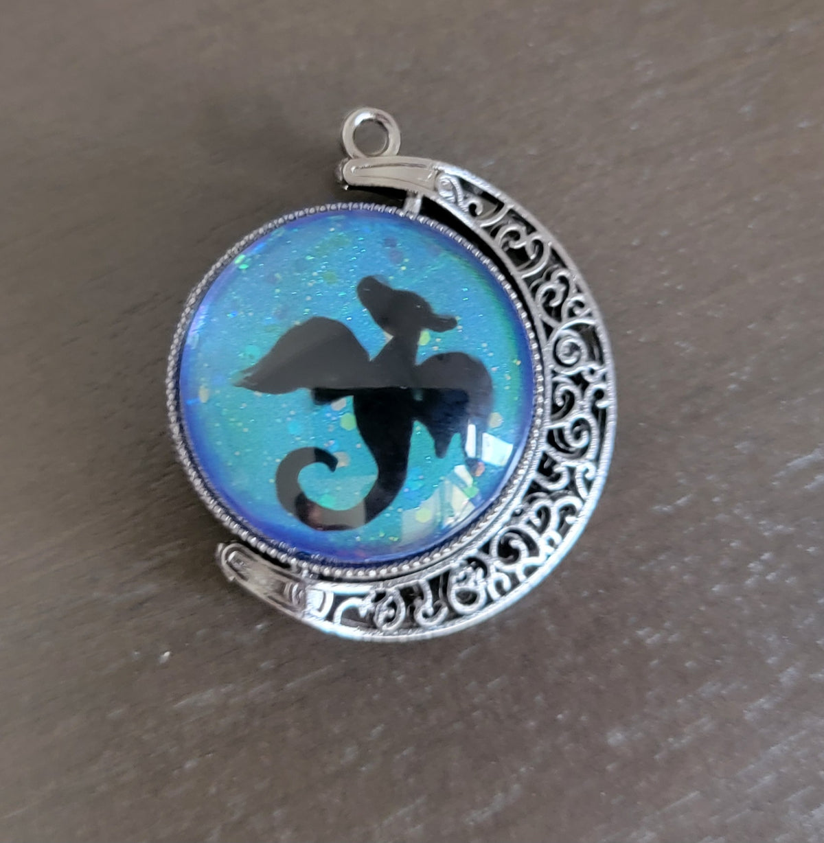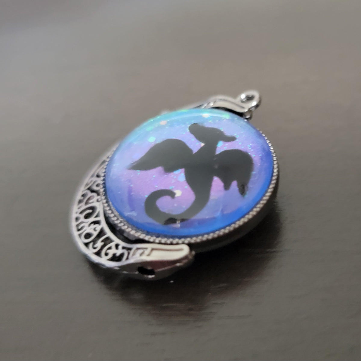 Dragon and Castle: Teal-Purple Spinning Pendant