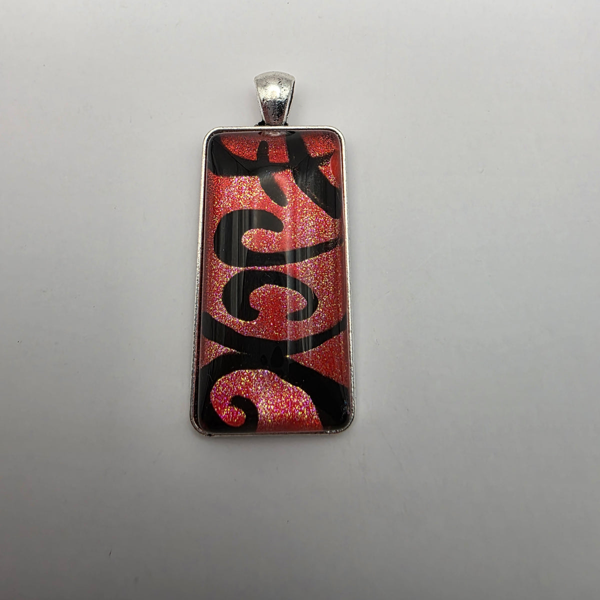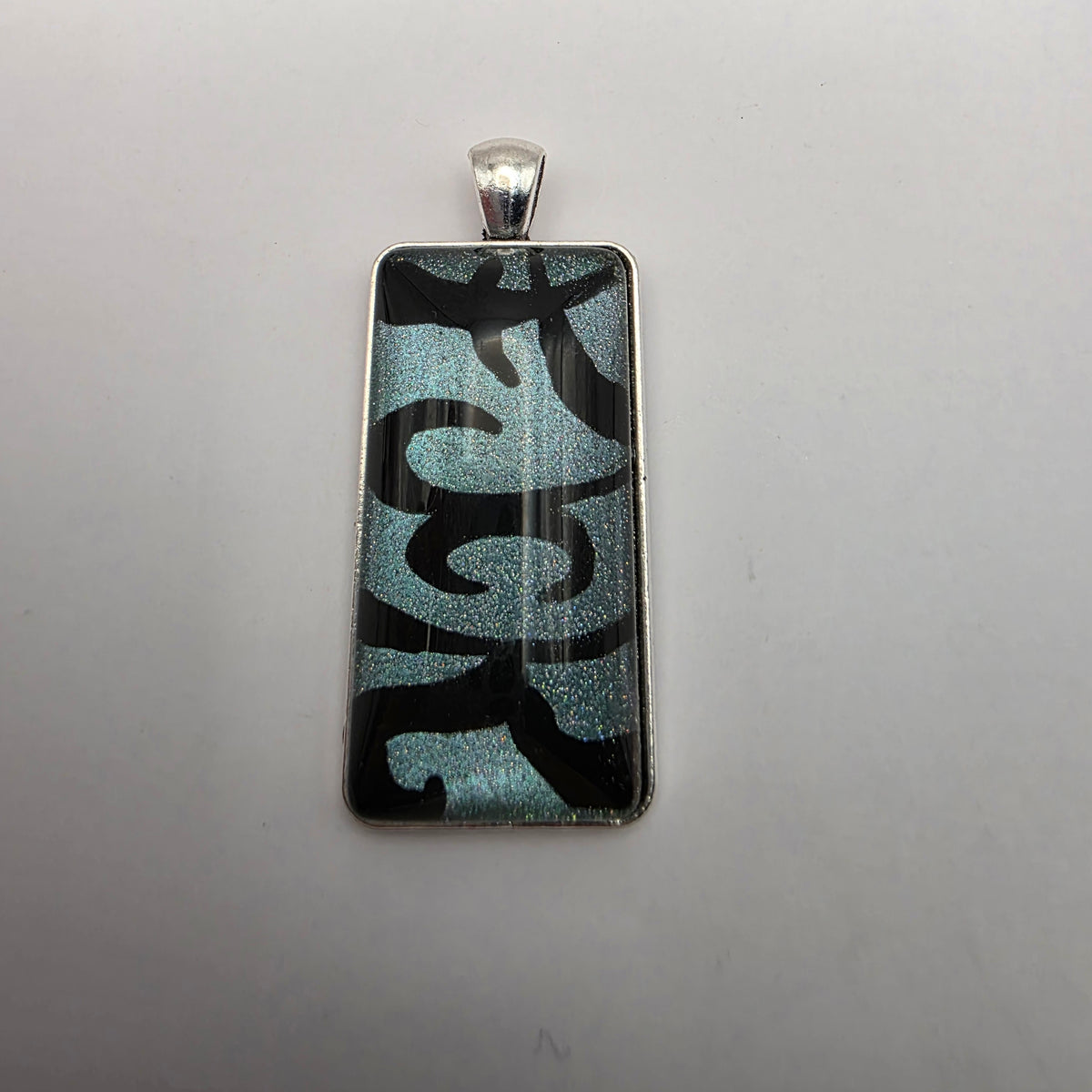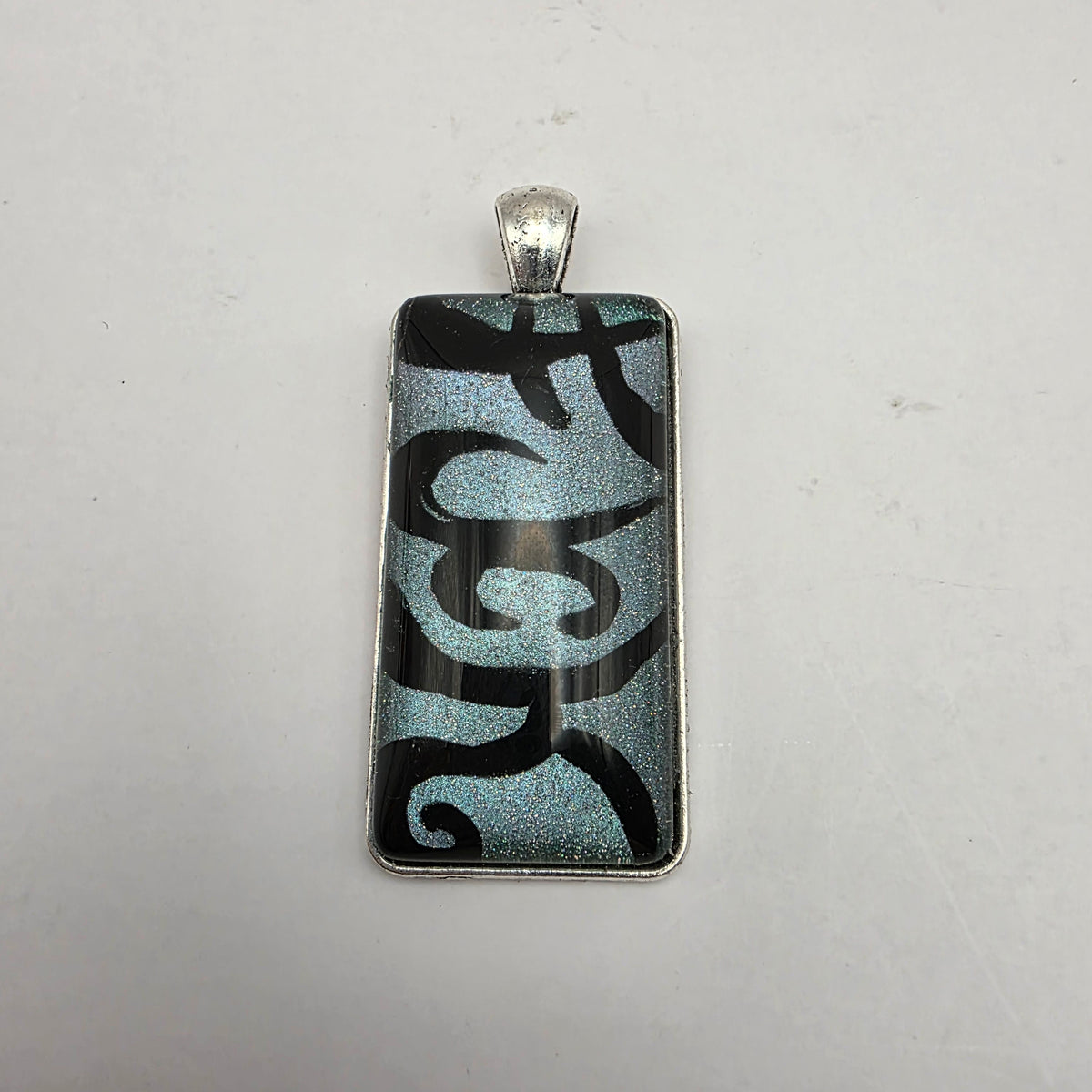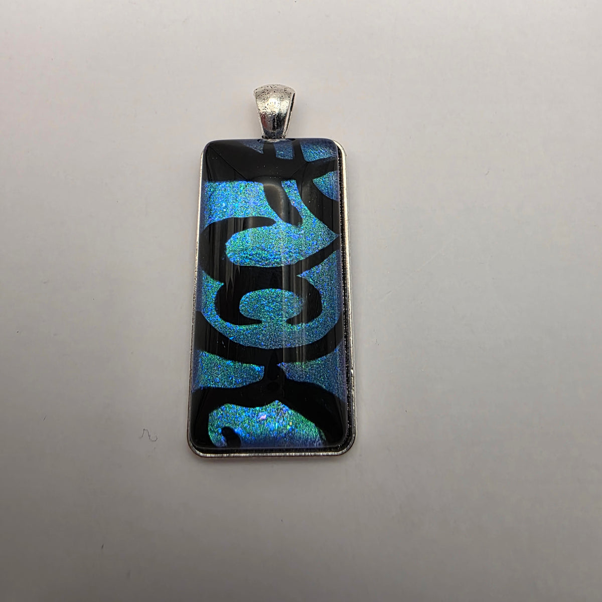 Setting measures 48x21mm, glass cabochon measures 38x19mm. Pendant comes on a matching 21 inch stainless steel chain. If you'd like a different length chain (30, 24, or 18 inches) please leave a note with your order.