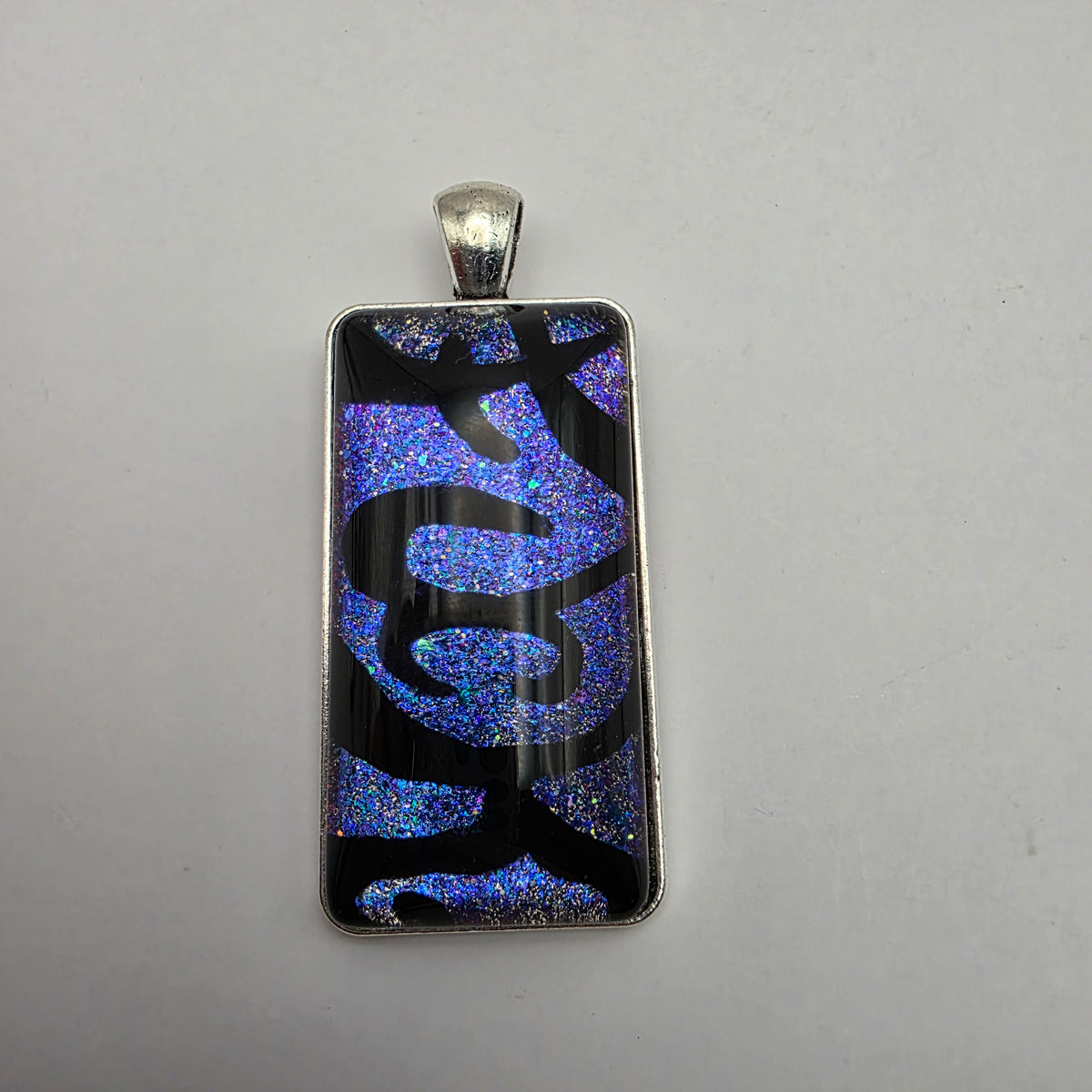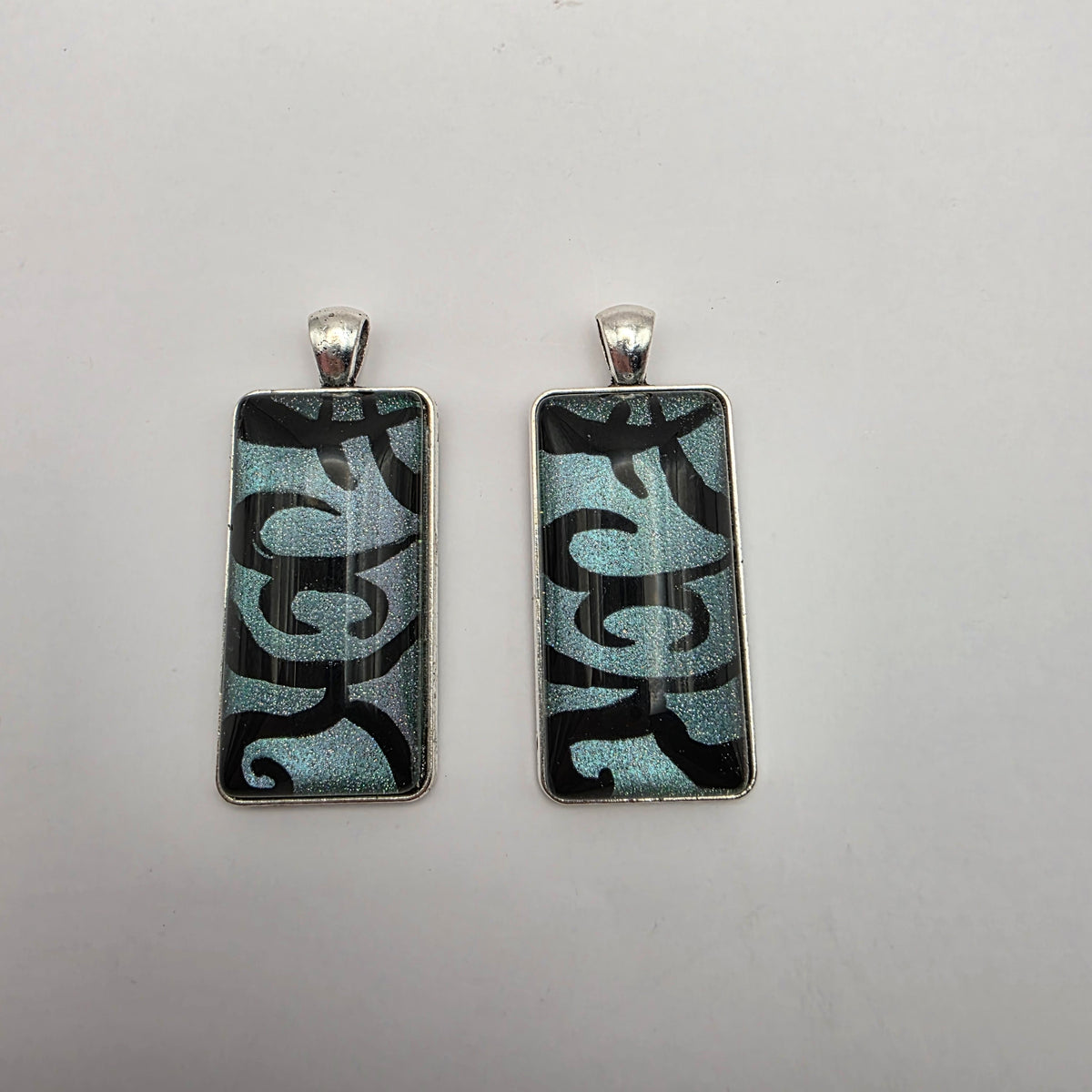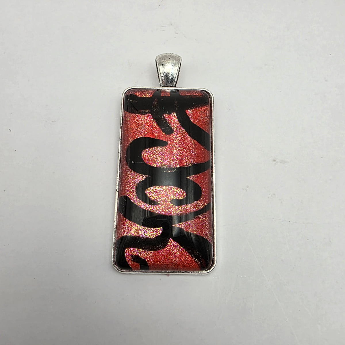 Setting measures 48x21mm, glass cabochon measures 38x19mm. Pendant comes on a matching 21 inch stainless steel chain. If you'd like a different length chain (30, 24, or 18 inches) please leave a note with your order.