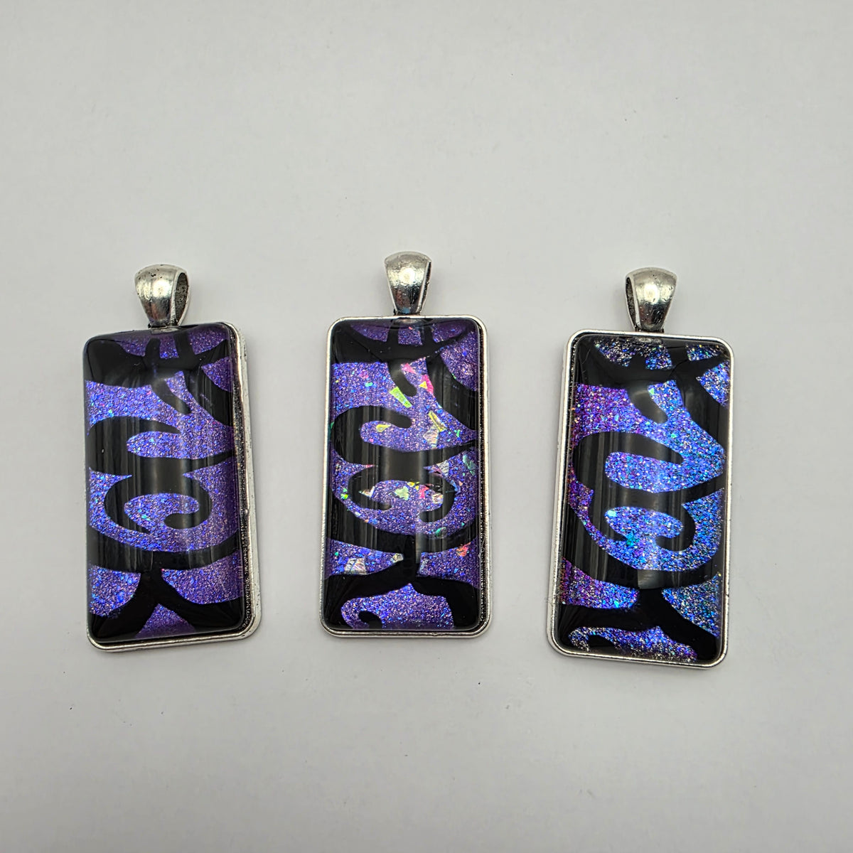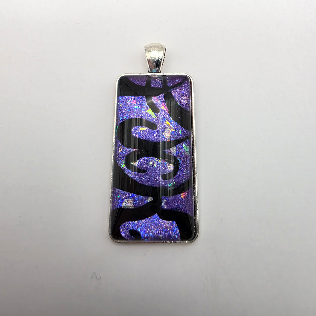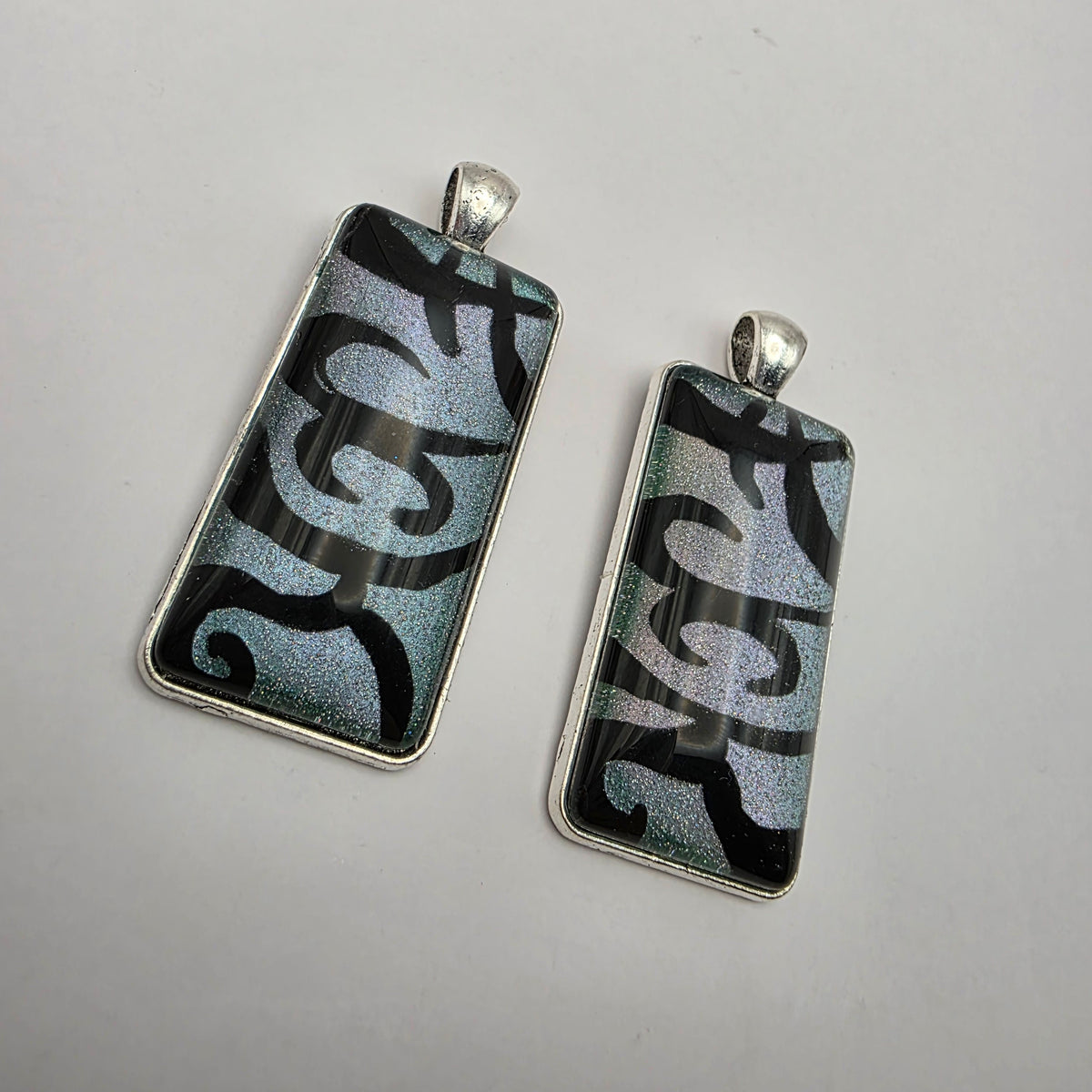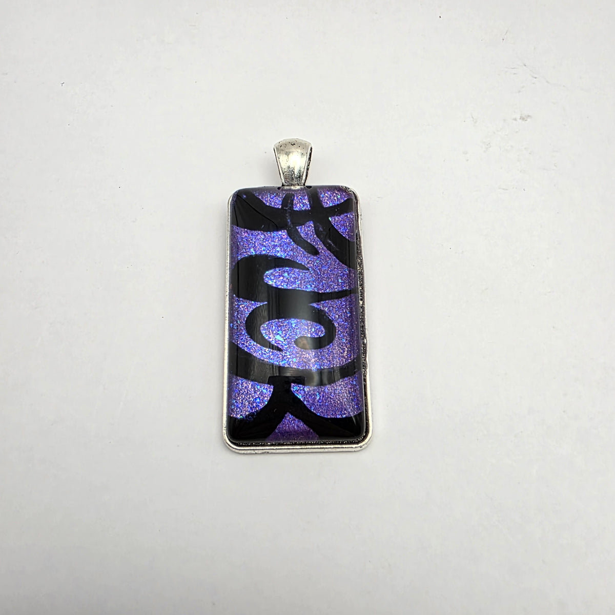 Setting measures 48x21mm, glass cabochon measures 38x19mm. Pendant comes on a matching 21 inch stainless steel chain. If you'd like a different length chain (30, 24, or 18 inches) please leave a note with your order.