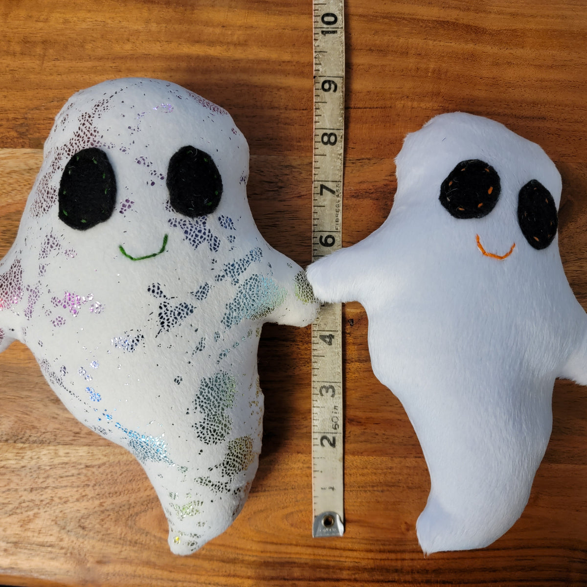 Body is made of a combination of soft minky fabric with a short fur pile, eyes are fleece.  Minky ghosts are about 8 inches tall.  Choose your favorite color from the bunch!