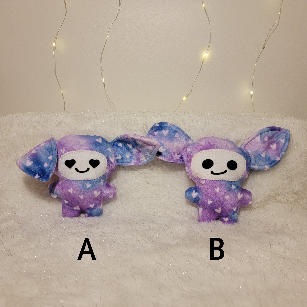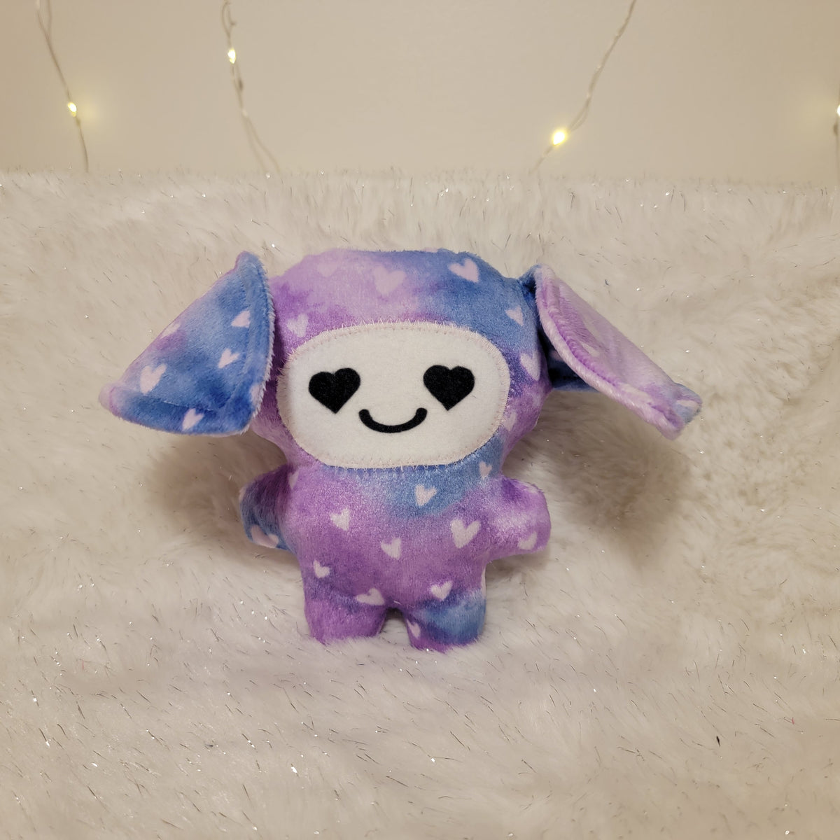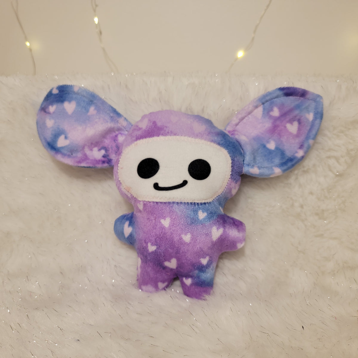 Extra-lovable gremlins with purple and blue fur scattered with light pink hearts. Select your favorite from the dropdown!