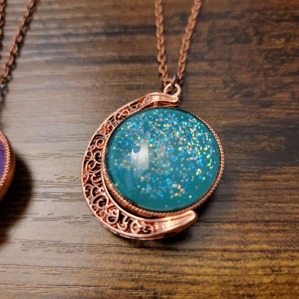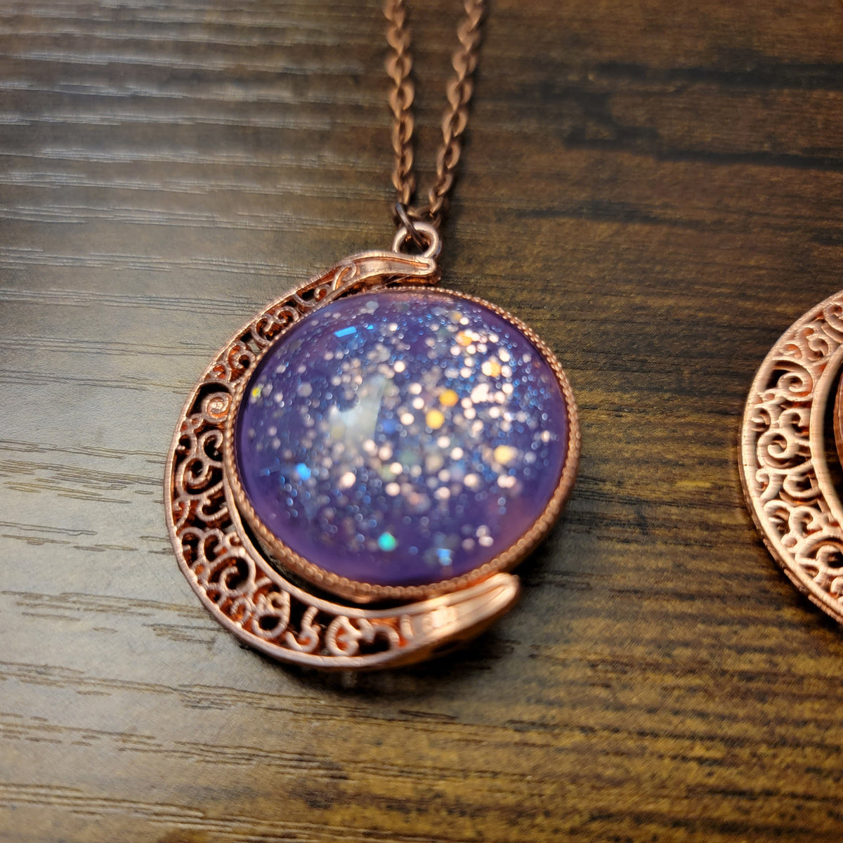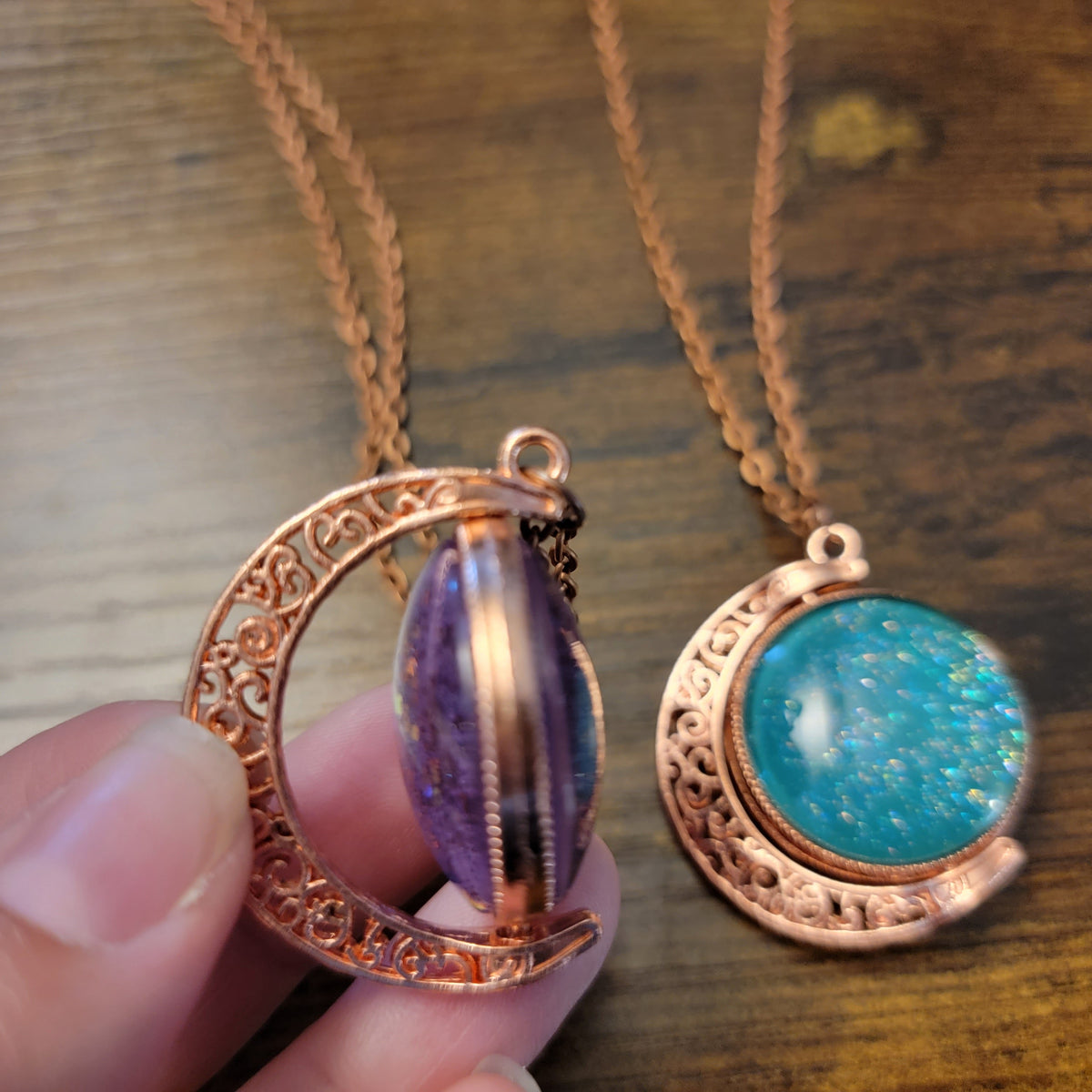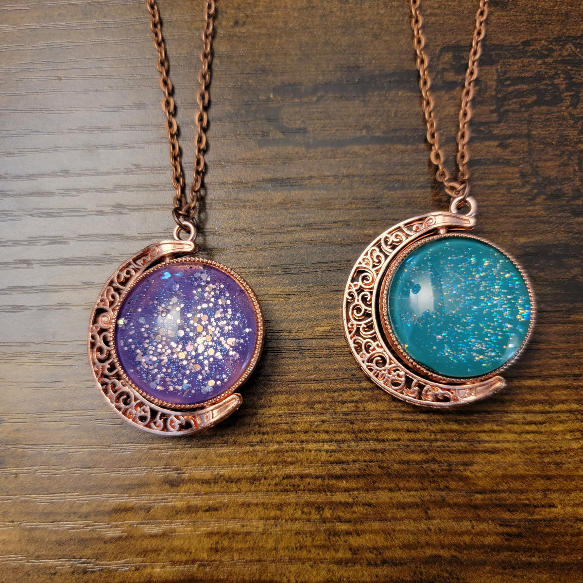Crescent Moons: Copper Tone Spinning Pendant