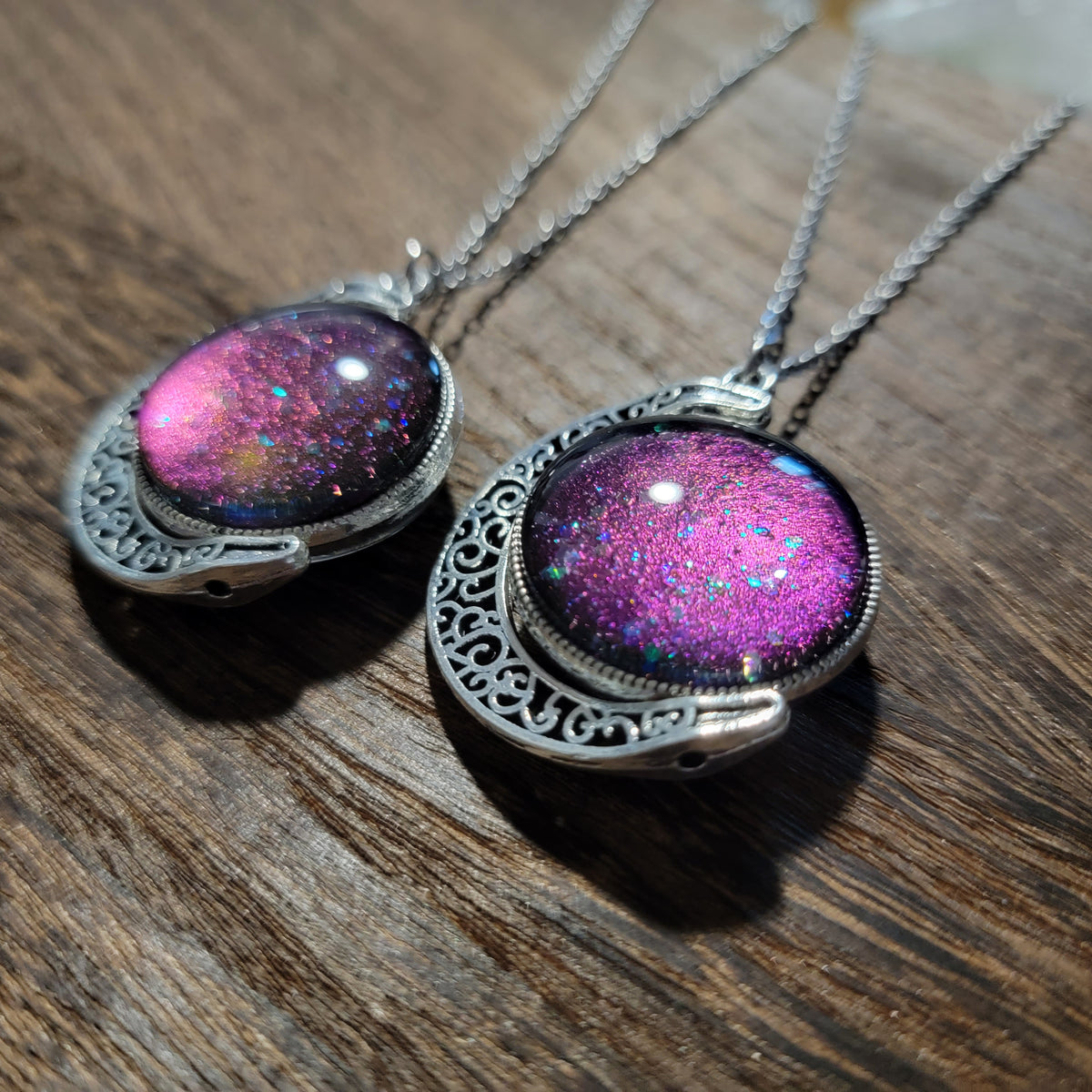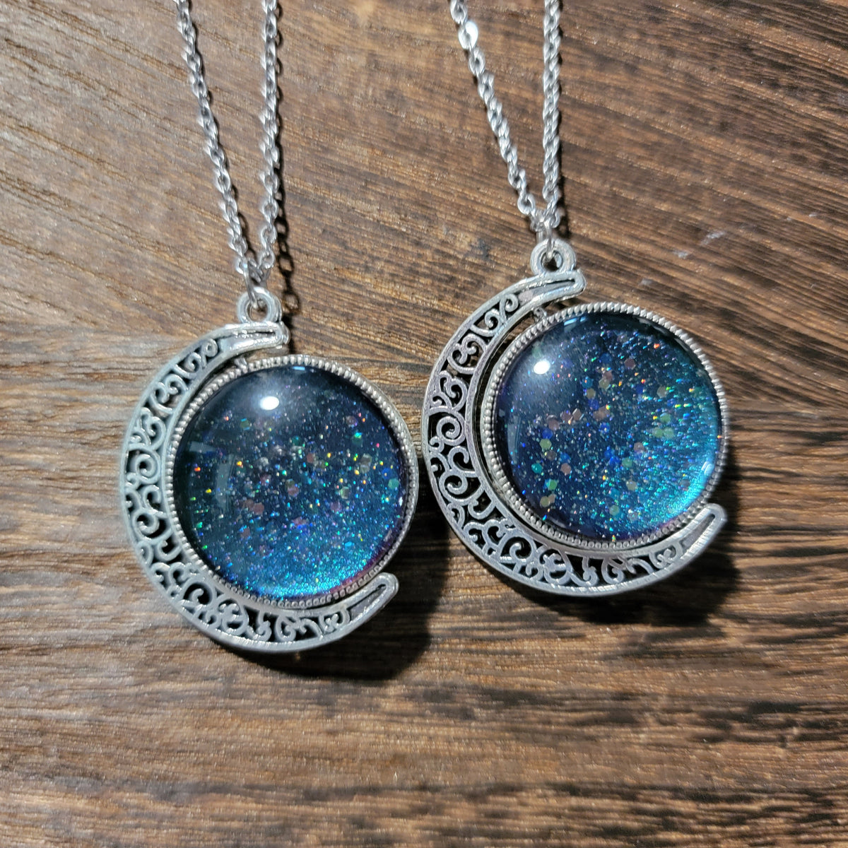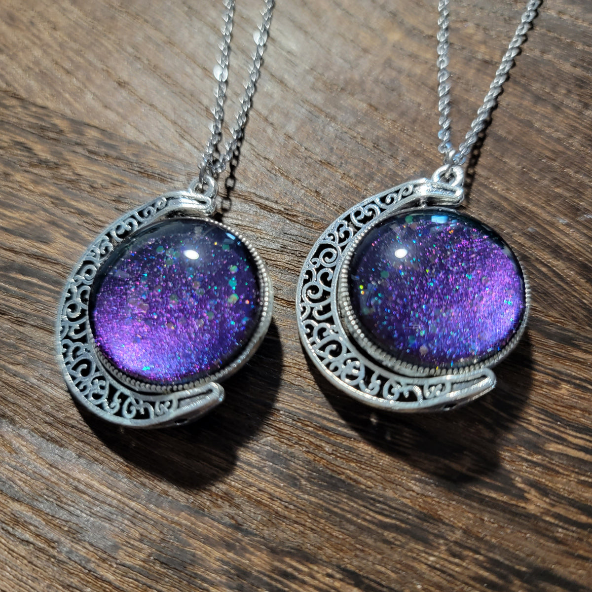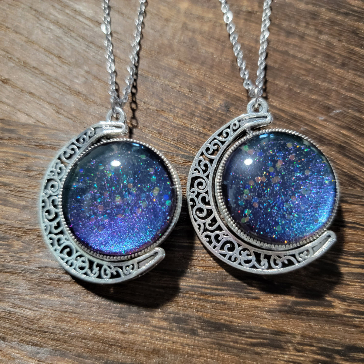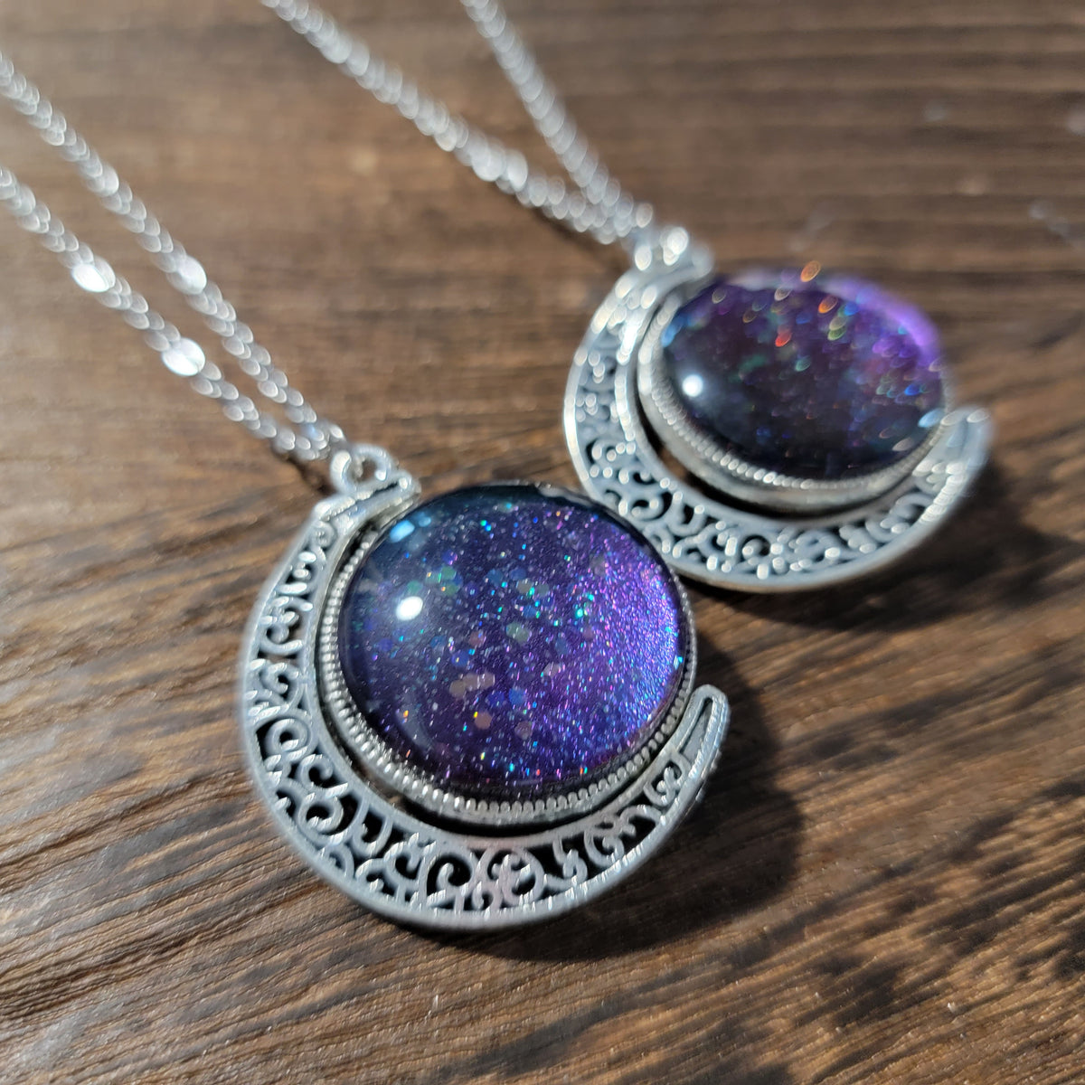 Galaxy Glitter Crescent Moons Spinning Pendant