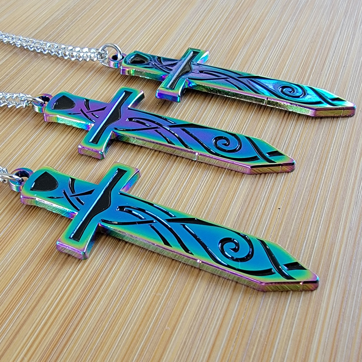For a comparison of sword color groups and chain options, please see the last two photos.